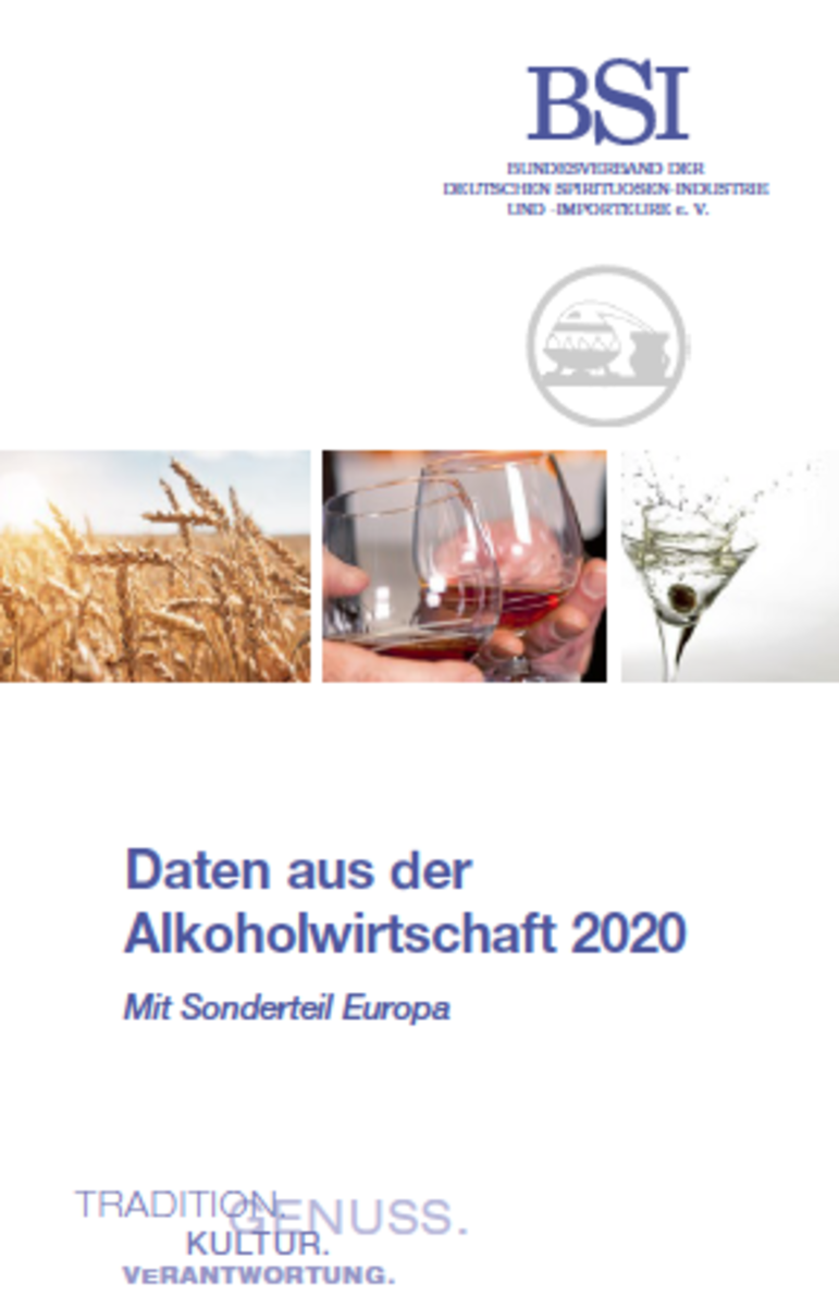 (mer) Der Bundesverband der Deutschen Spirituosen-Industrie und -Importeure e. V. (BSI), Bonn, veröffentlicht die „Daten aus der Alkoholwirtschaft 2020“.